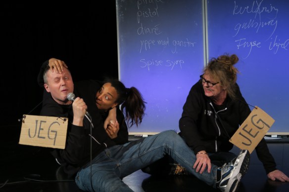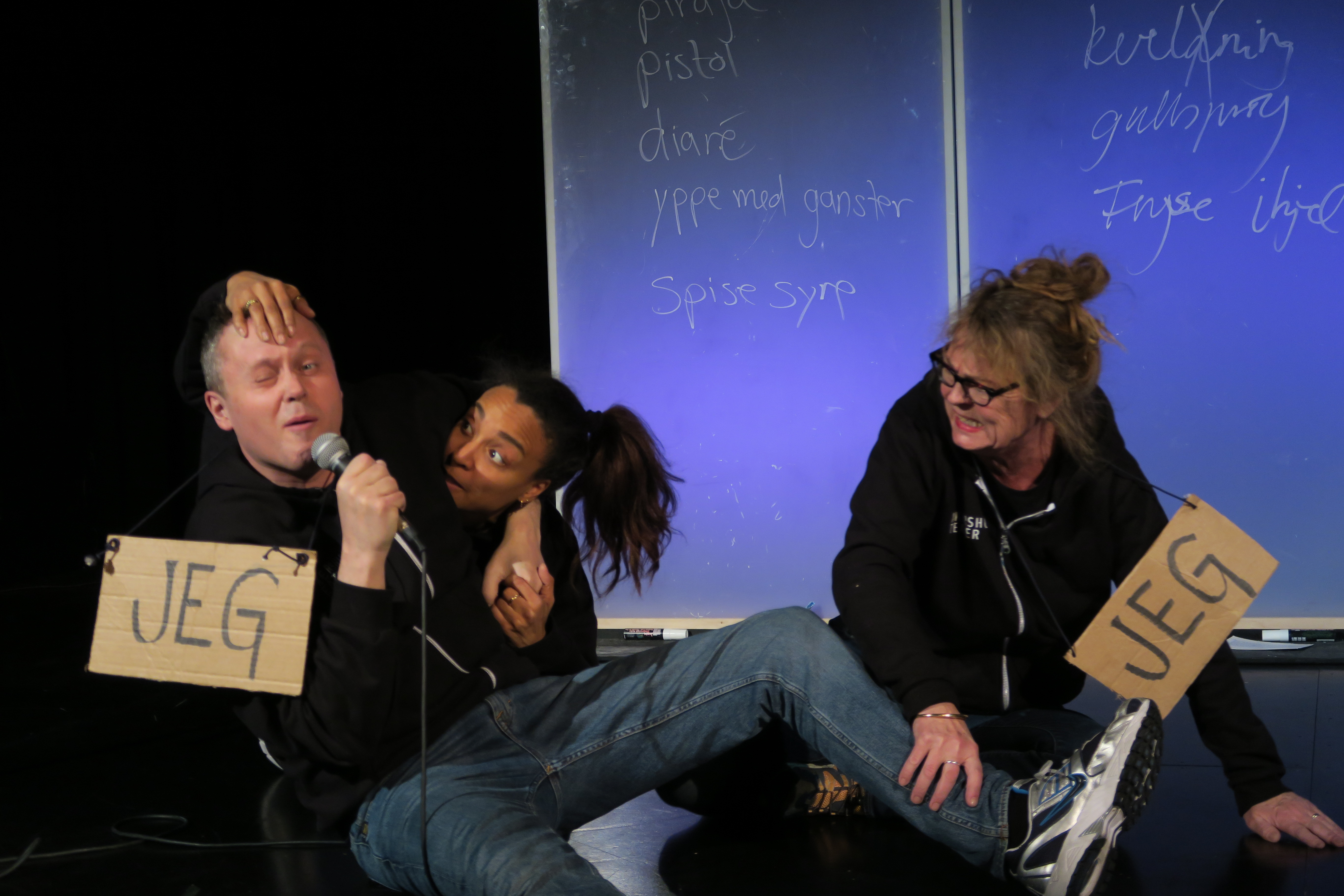Skuespillere i produksjonen: Evelyn Rasmussen Osazuwa, Minken Fosheim og Peder Opstad